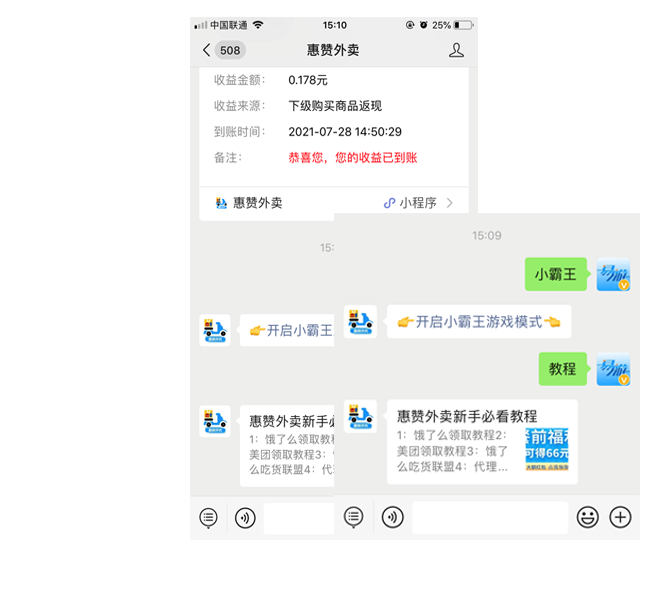 用户下单后,上级收送订单收益报表提醒,下级收到发货返利提醒